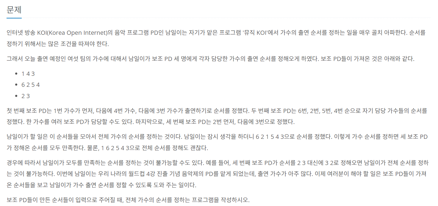 https://www.acmicpc.net/problem/2623