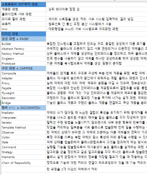 - 아키텍쳐 패턴이나 디자인 패턴 중에서는 무조건 나올 거 같아서 간단하게 정리해서 달달 외웠다.