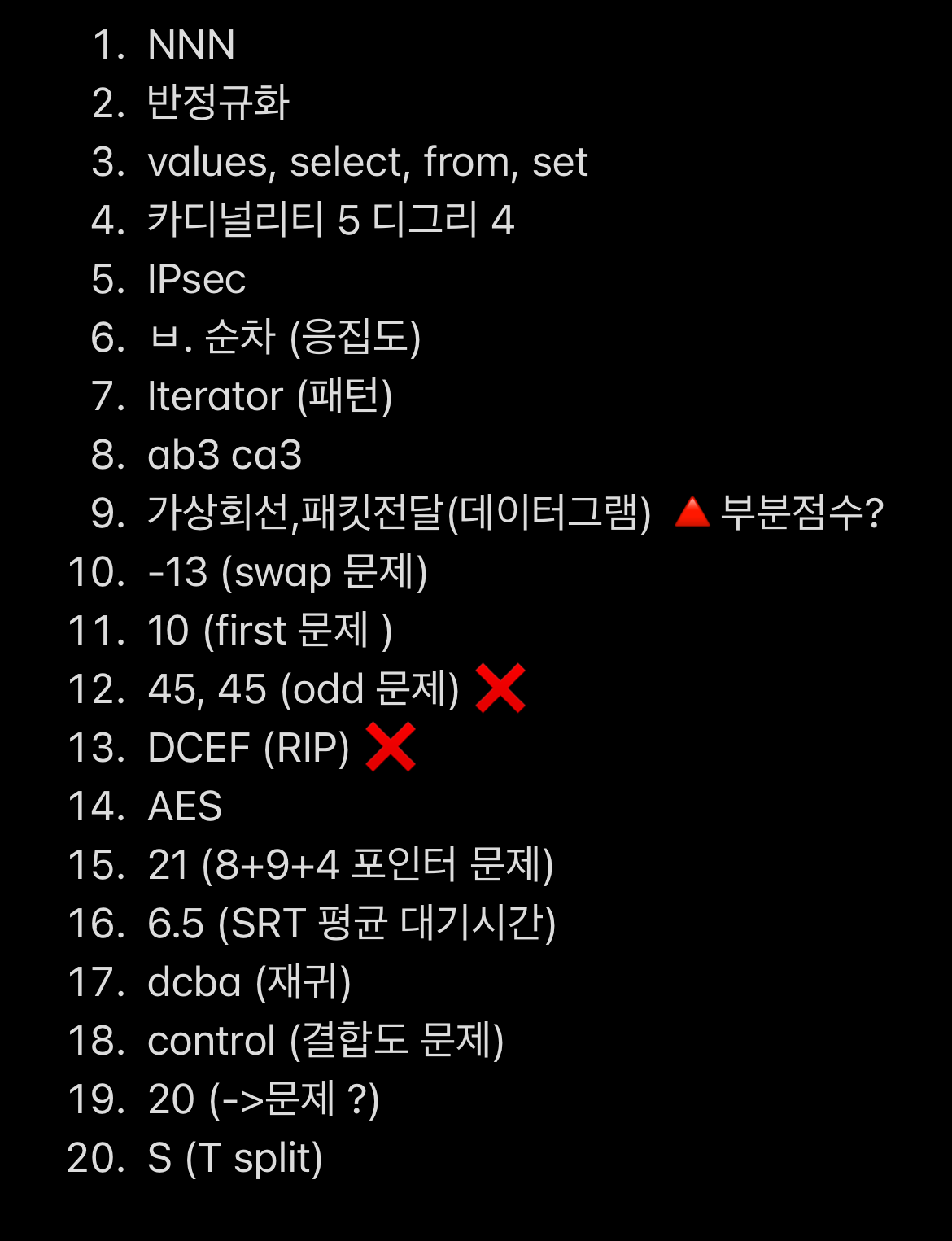 사실 정처기가 예전에 비해서 문제 유형이 개념 쪽은 쉬워지고 코딩 쪽이 어려워진 느낌이라 개념만 잘 외운다면 코딩을 꾸준히 했던 전공생(=나)은 어렵지는 않게 문제를 풀 수 있을 것 같다.