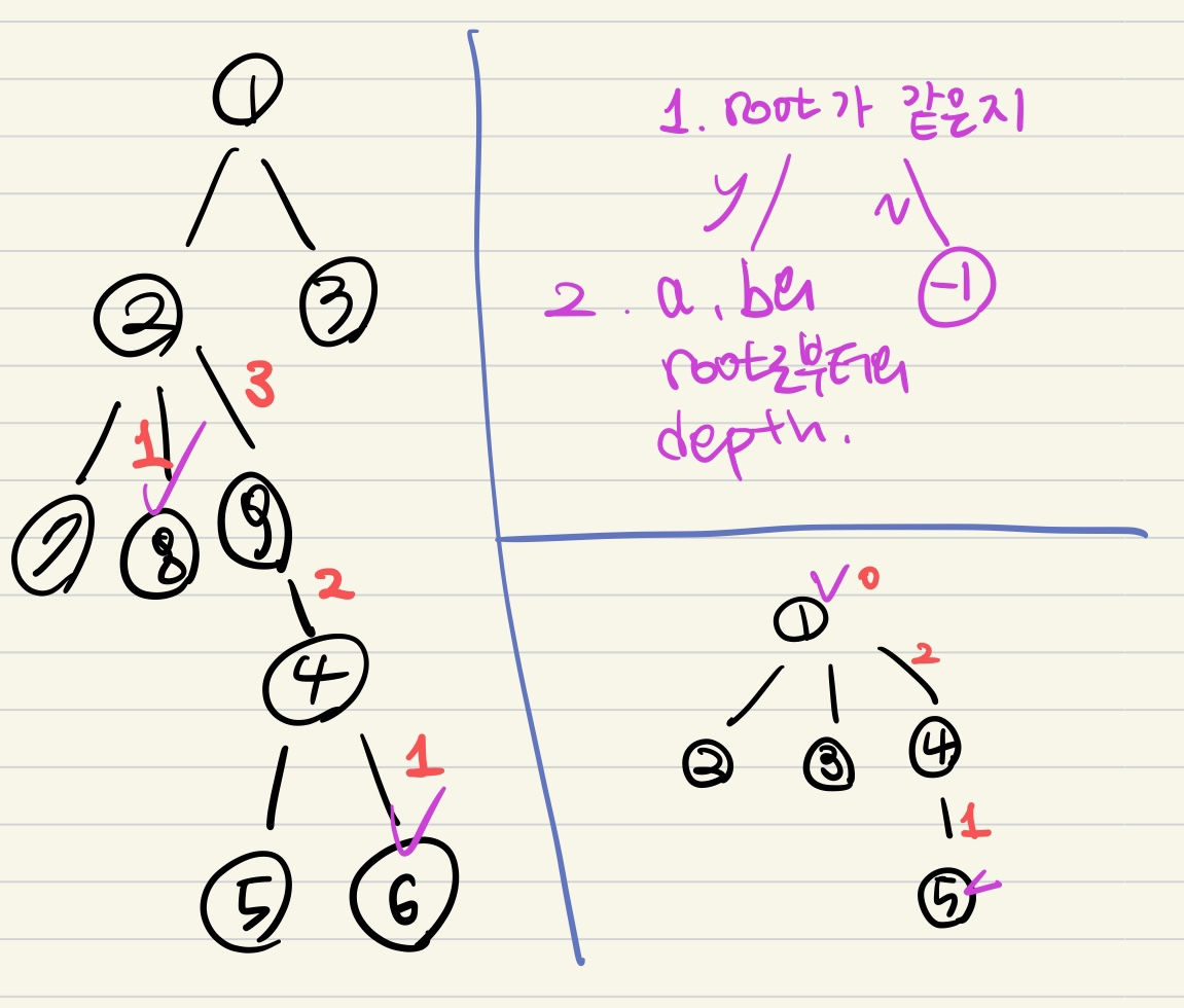 3. 공통 부모 노드를 찾은 경우 누적 거리의 합을 리턴해준다.