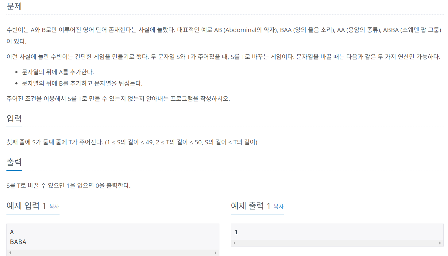 그리고 일부가 일치하는 경우 두 가지 연산 1) 문자열 뒤에 A를 추가한다 2) 문자열 뒤에 B를 추가한 뒤 문자열을 뒤집는다를 한 문자열을 q에 넣어준다.